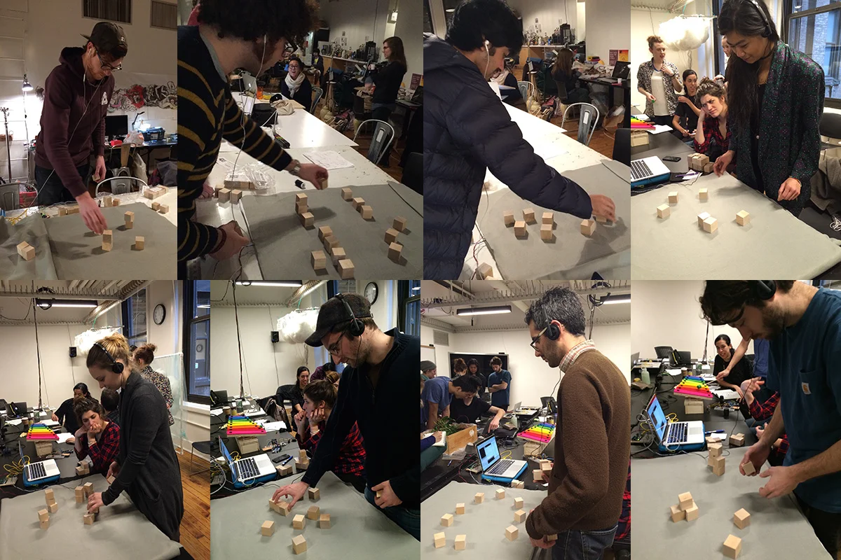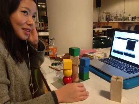 We prepared 30 wooden blocks, made sensors as round shape, and set different types of delay so that we can check what kind of interaction is the most users prefer.