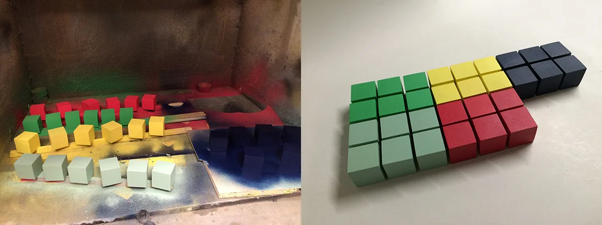 We thought that making colorful blocks is another way of engaging people to interact with it. We decided to paint blocks in 6 different colors since we have 5 types of sensors. (However, it makes people to think that each color has different effect with each other.)